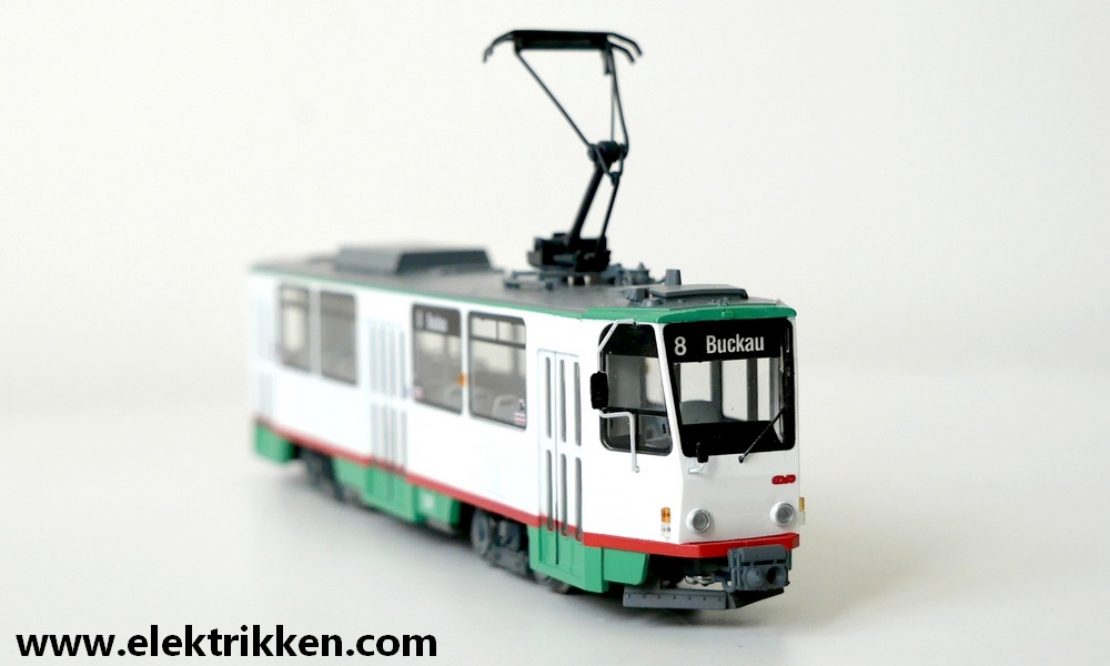 Die Wagen des Typs T6A2 / B6A2 werden in der Version Magdeburg neu als Bausatz aufgelegt. Das Original wurde vor etwa 2 Jahren mit viel Aufmerksamkeit aus dem Betrieb verabschiedet – Zeit also, eine würdige Erinnerung zu schaffen! Im Vergleich zu vorangegangenen T6-Modellen wurde die Montage deutlich vereinfacht: Die Wagenkästen werden künftig bereits bemalt angeboten. Die Fenster werden bündig eingesetzt und sind einzeln mit ihren typischen schwarzen Fensterrahmen bedruckt worden. Die Bodenplatte ist für die Aufnahme von angetriebenen Drehgestellen vorbereitet.